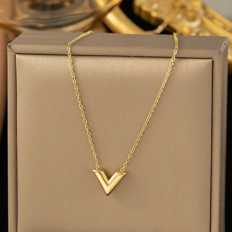 18K Gold Plated Stainless Steel V Pendant Necklace