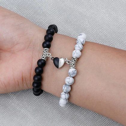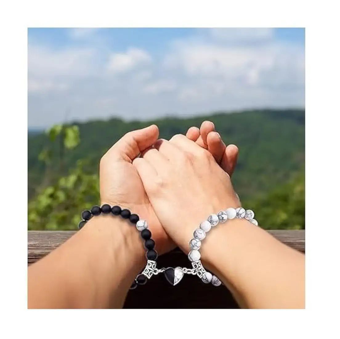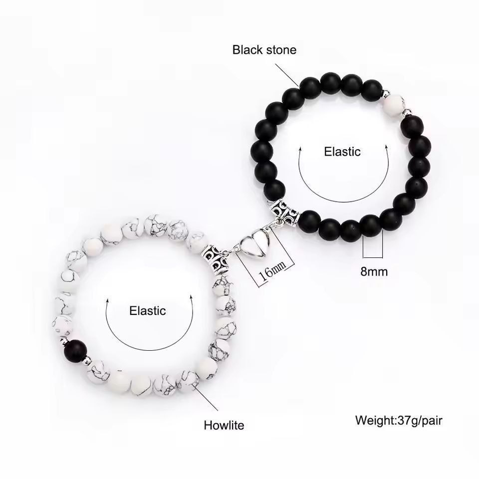 2pc/Set Natural Stone Beads Bracelet For Women Men Attractive Distance Heart Magnetic Bracelets Friendship Couple Jewelry