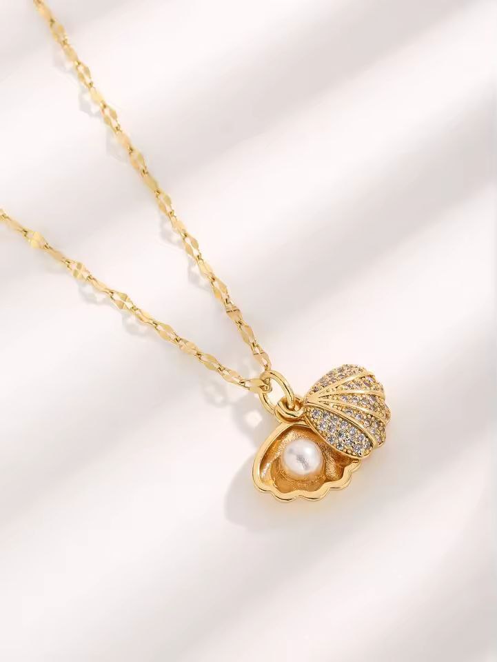 Stainless Steel Gold Plated Horseshoe U-Shape Pearl Choker Necklace for Women