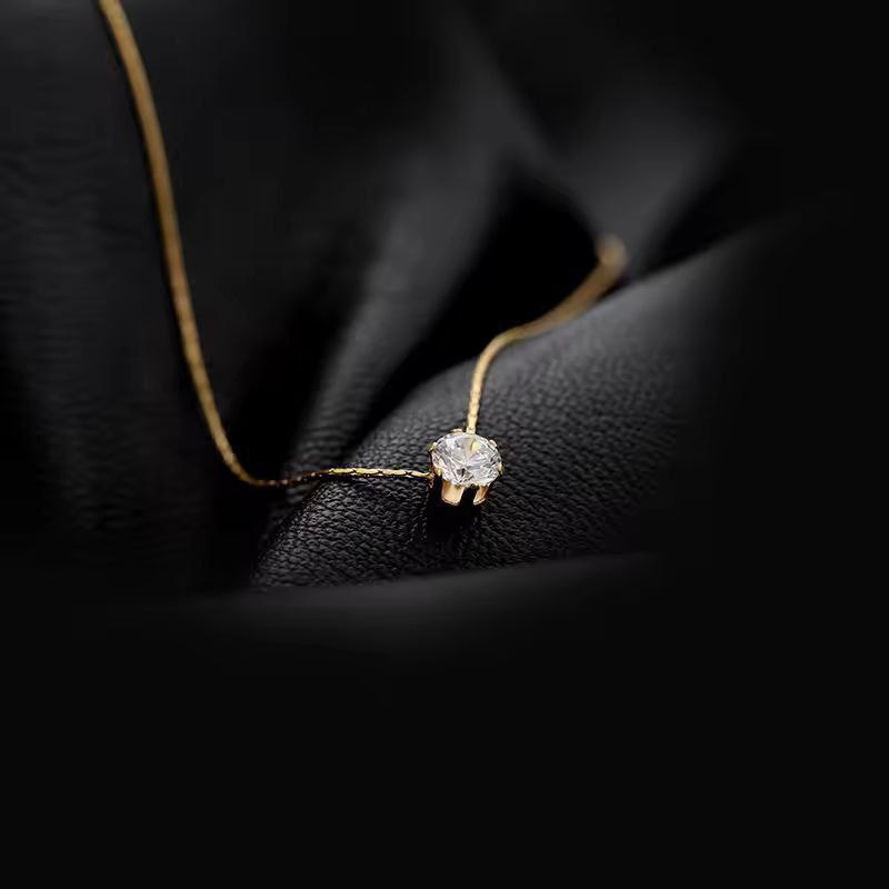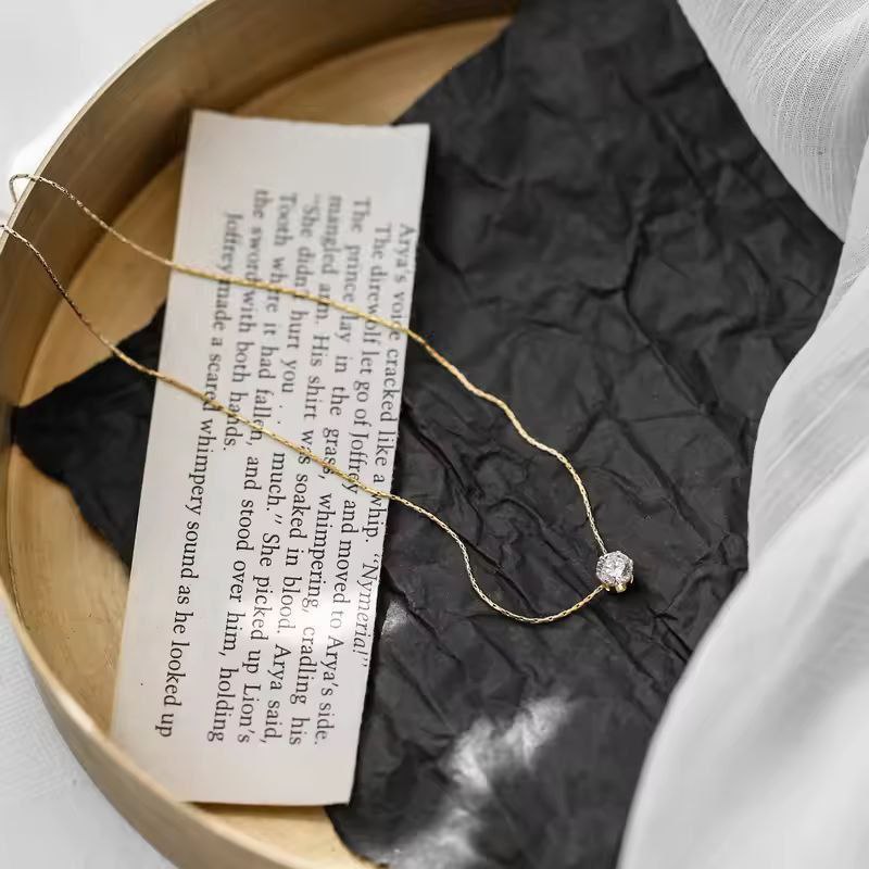 Dainty Minimalist Solitaire Zircon Charm Necklace Anti Tarnish Stainless Steel Chain