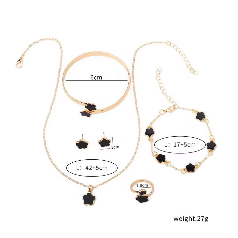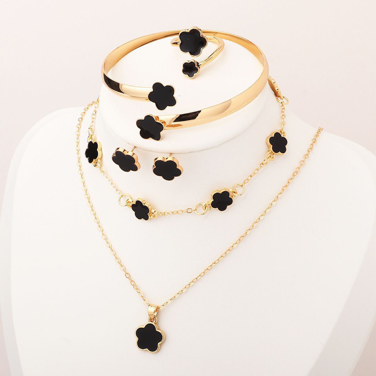 Four-piece Lucky Five Flower Bracelet Necklace Earrings Bangle Adjustable Plum Blossom Chain For Women Party Jewelry Gift Clover