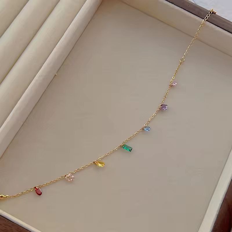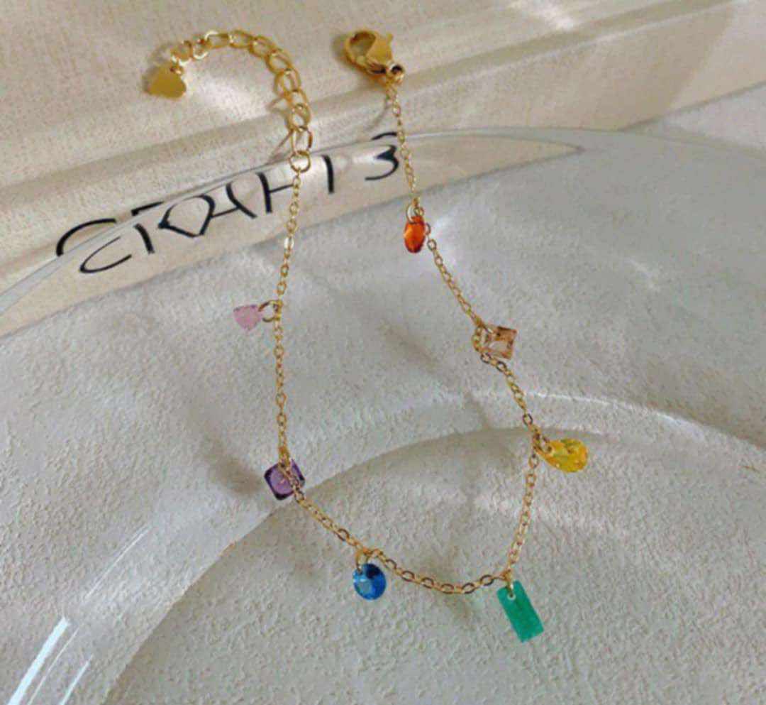 Stainless Steel Gold Plated Non Fade Korean Romantic Colorful Zirconia Pendant Anklet