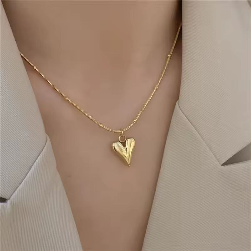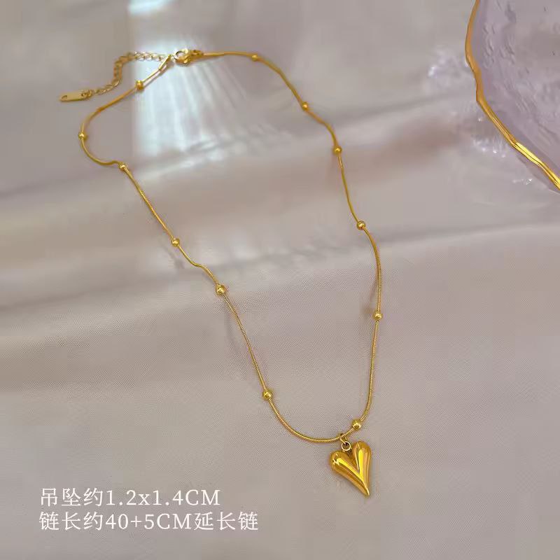 Stainless Steel Love Heart Pendant Necklace for Women Girls Gold Color Steel Color Korean Style Kpop Clavicle Chain Jewelry Gift