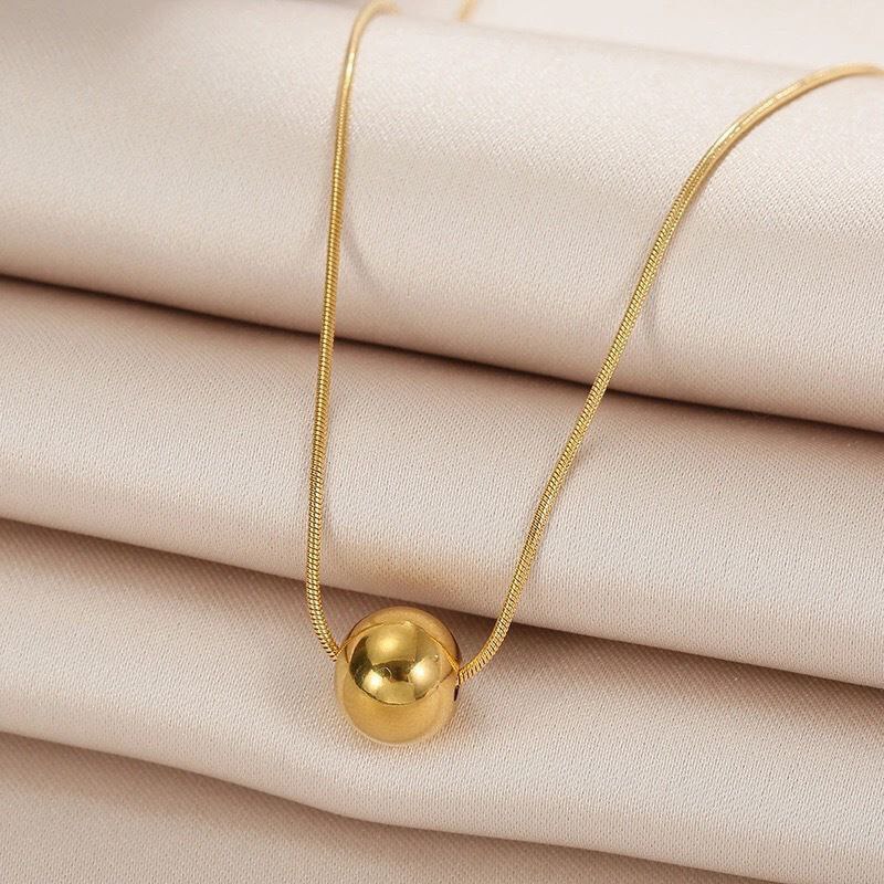 Stainless Steel Round Bead Pendant Necklace for Women – Gold Color Classic Simple