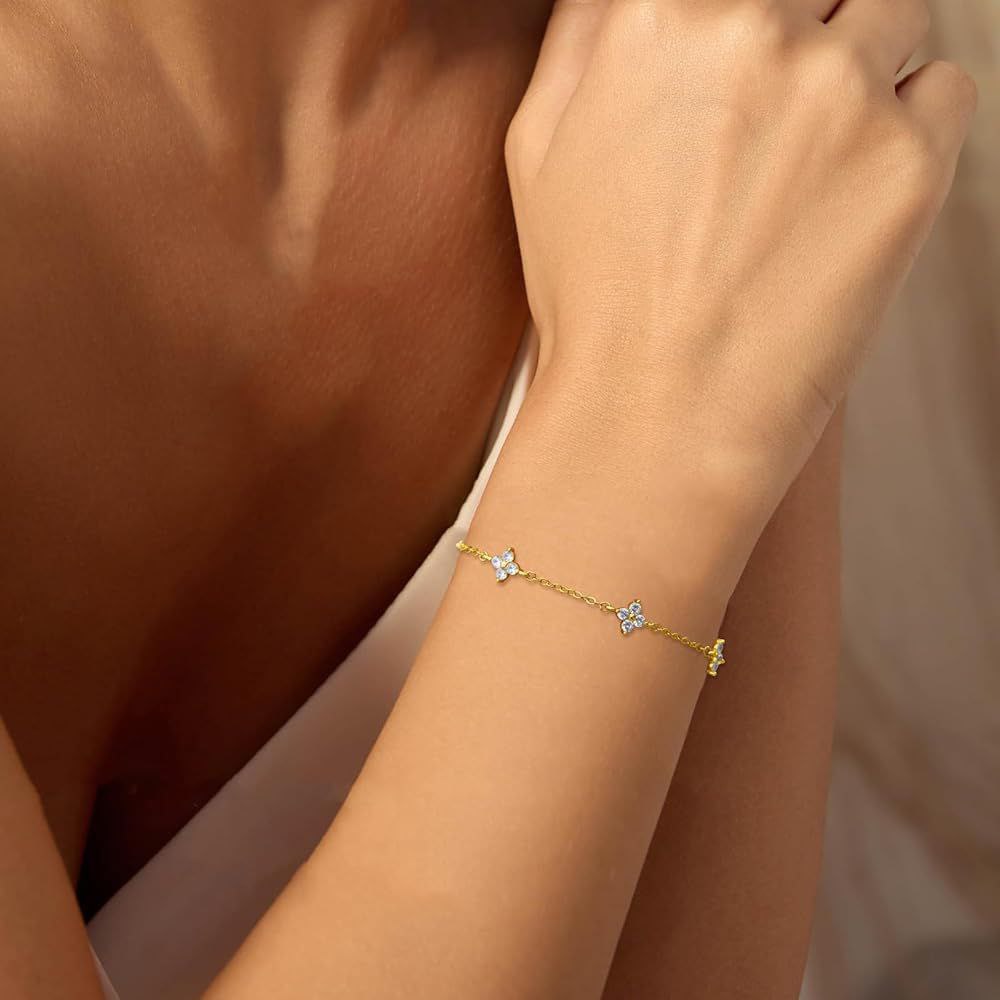 Star Moissanite Diamond Bracelet for Women – Sterling Silver Lucky Clover Chain Jewelry